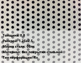 Лист перфорированный 0.8 1.25х2.5 Марка: 08пс без покрытия стальной Rv, шт, круглая цена от 3 677 ₽ / шт, где купить, условия доставки в Саратове и Саратовской области
