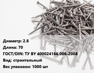 Гвоздь 2.8х70 ГОСТ: ТУ BY 400024166.006-2008 строительный 1000 шт
