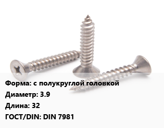 Саморез с полукруглой головкой D=3.9 L=32 ГОСТ: DIN 7981