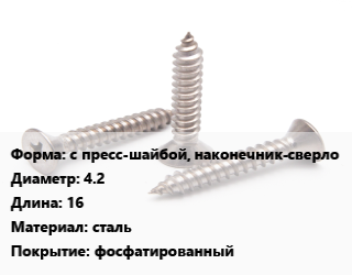 Саморез с пресс-шайбой, наконечник-сверло D=4.2 L=16 сталь фосфатированный, шт цена По запросу где купить, условия доставки в Саратове и Саратовской области