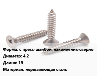 Саморез с пресс-шайбой, наконечник-сверло D=4.2 L=19 нержавеющая сталь, шт, А2 цена от 7.83 ₽ / кг, где купить, условия доставки в Саратове и Саратовской области