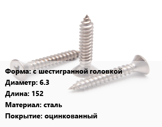 Саморез с шестигранной головкой D=6.3 L=152 сталь оцинкованный