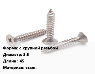 Саморез с крупной резьбой D=3.5 L=45 сталь, упаковка 5000 шт цена от 1 220 ₽ / кг, где купить, условия доставки в Саратове и Саратовской области