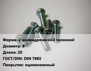 Винт с цилиндрической головкой 8х20 DIN 7985 оцинкованный, цена за шт, кг цена от 9.59 ₽ / кг, где купить, условия доставки в Саратове и Саратовской области