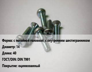 Винт с потайной головкой, с внутренним шестигранником 14х40 DIN 7991 оцинкованный, 8.8, цена за шт, кг цена от 29.9 ₽ / кг, где купить, условия доставки в Саратове и Саратовской области