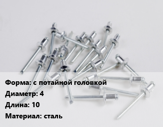 Заклепка с потайной головкой 4х10 сталь, шт, вытяжная цена от 5.76 ₽ / шт, где купить, условия доставки в Саратове и Саратовской области