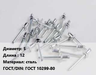 Заклепка 5х12 сталь ГОСТ: ГОСТ 10299-80, упаковка цена от 133.77 ₽ / шт, где купить, условия доставки в Саратове и Саратовской области