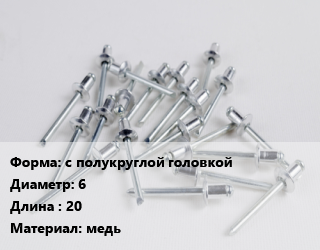 Заклепка с полукруглой головкой 6х20 медь, упаковка 100 шт цена от 213.31 ₽ / шт, где купить, условия доставки в Саратове и Саратовской области
