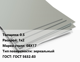 Лист нержавеющий 0.5 1х2 Сталь: 08Х17 Тип:зеркальный ГОСТ 5632-83