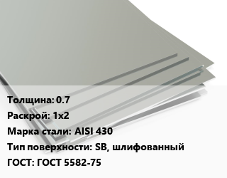 Лист нержавеющий 0.7 1х2 Сталь: AISI 430 Тип:SB, шлифованный ГОСТ 5582-75