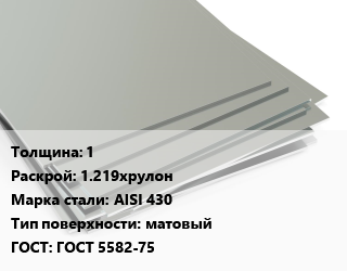 Лист нержавеющий 1 1.219хрулон Сталь: AISI 430 Тип:матовый ГОСТ 5582-75