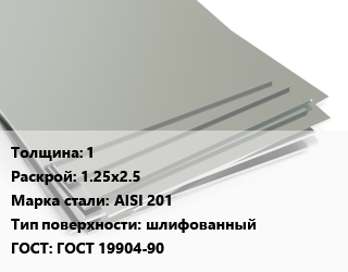 Лист нержавеющий 1 1.25х2.5 Сталь: AISI 201 Тип:шлифованный ГОСТ 19904-90