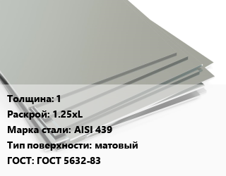 Лист нержавеющий 1 1.25хL Сталь: AISI 439 Тип:матовый ГОСТ 5632-83