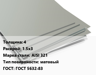 Лист нержавеющий 4 1.5х3 Сталь: AISI 321 Тип:матовый ГОСТ 5632-83